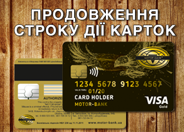 Термін обслуговування карток буде продовжено до 1 липня 2020 року. По закінченню карантину клієнтам, чий термін дії карток закінчився, потрібно отримати свою картку з новим строком дії у стандартному режимі у своєму відділенні АТ «МОТОР-БАНК».