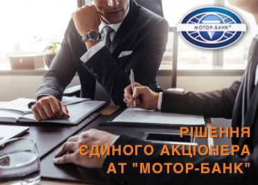 9 квітня 2020 року єдиним акціонером акціонерного товариства «МОТОР-БАНК», Богуслаєвим Вячеславом Олександровичем, якому належить 100 % статутного капіталу акціонерного товариства «МОТОР-БАНК» прийнято наступні рішення:
